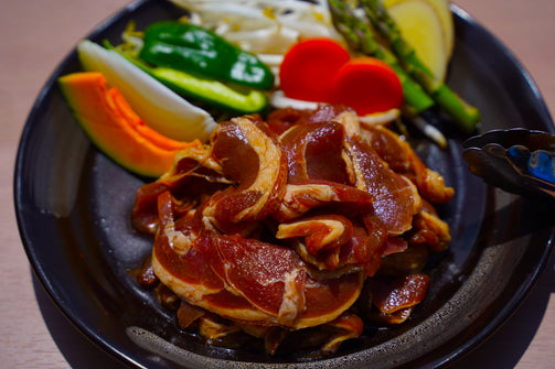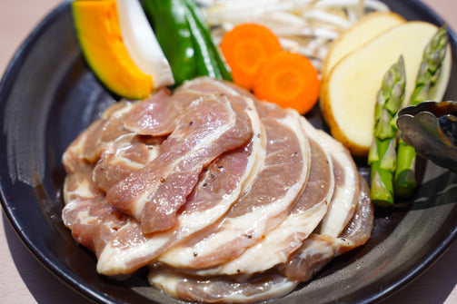 珍しい塩味のジンギスカン・リンゴ果汁で味付けした醤油味のジンギスカンです。柔らかく・臭みがないのでとても食べやすいです。